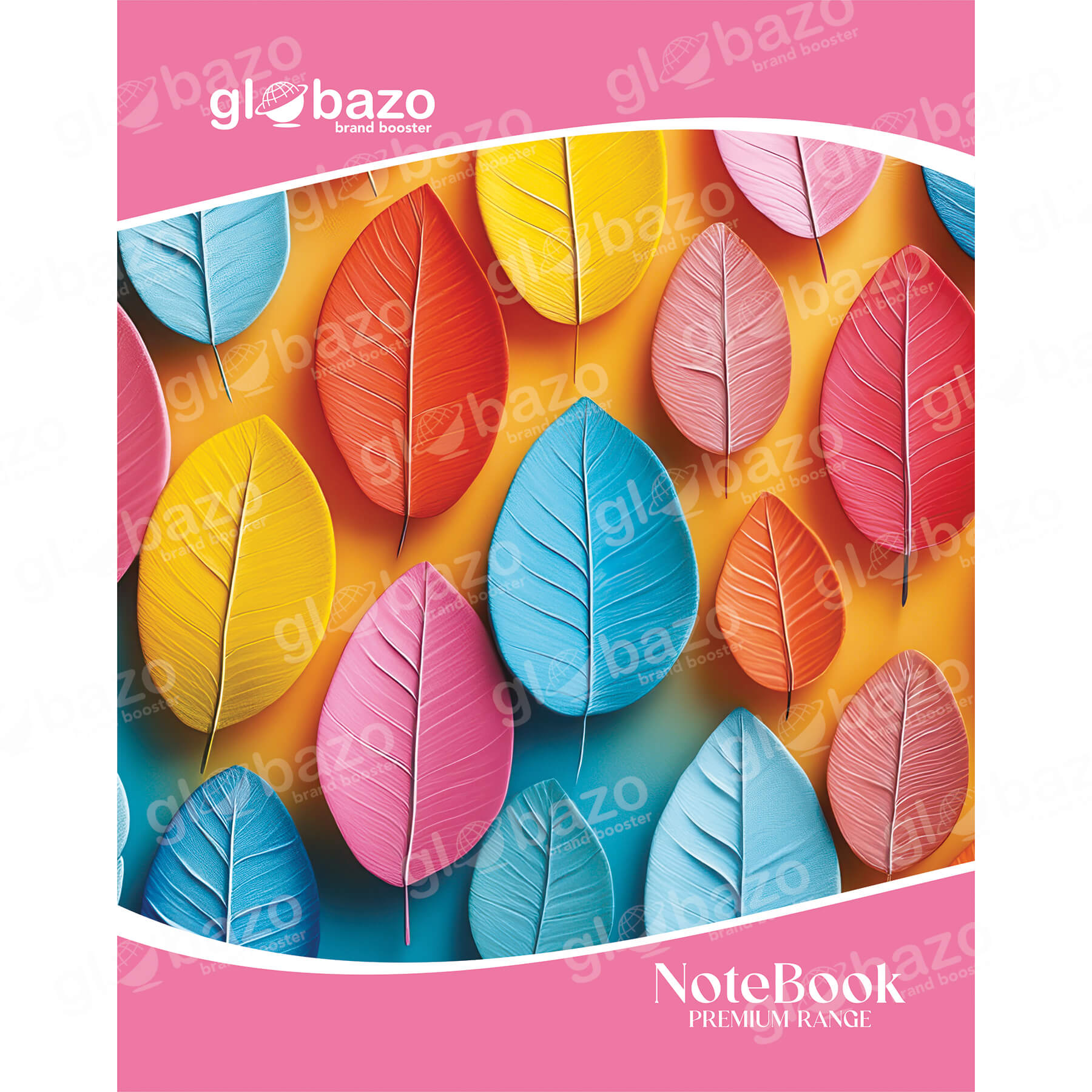 A bright and cheerful cover featuring colorful embossed leaves on a warm background, giving a fun and lively notebook appeal.