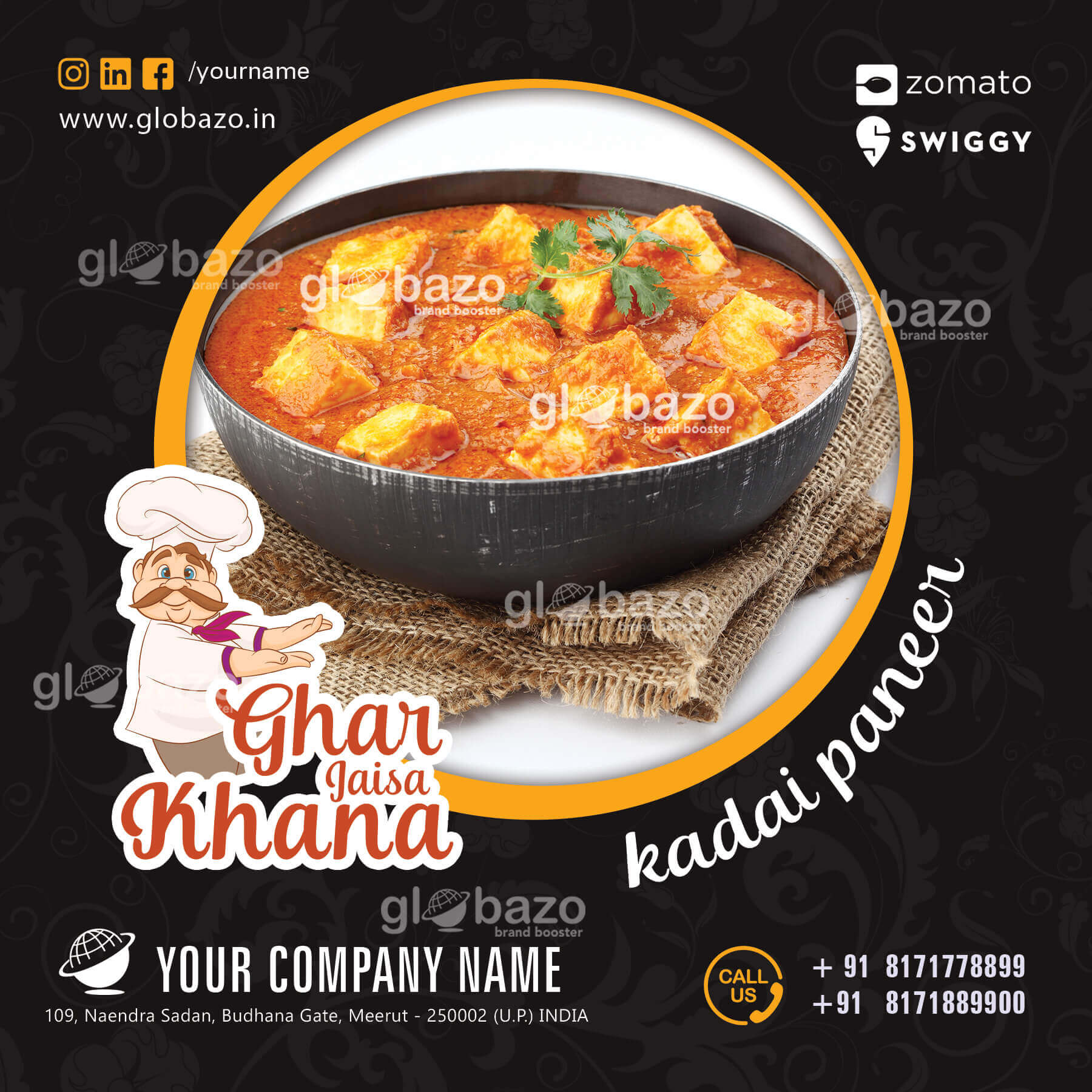 Main Course Specialty Master Dish according to your Shef/Restaurant/ Dhaba etc. under Your Brand Banner in a attractive way with Globazo.