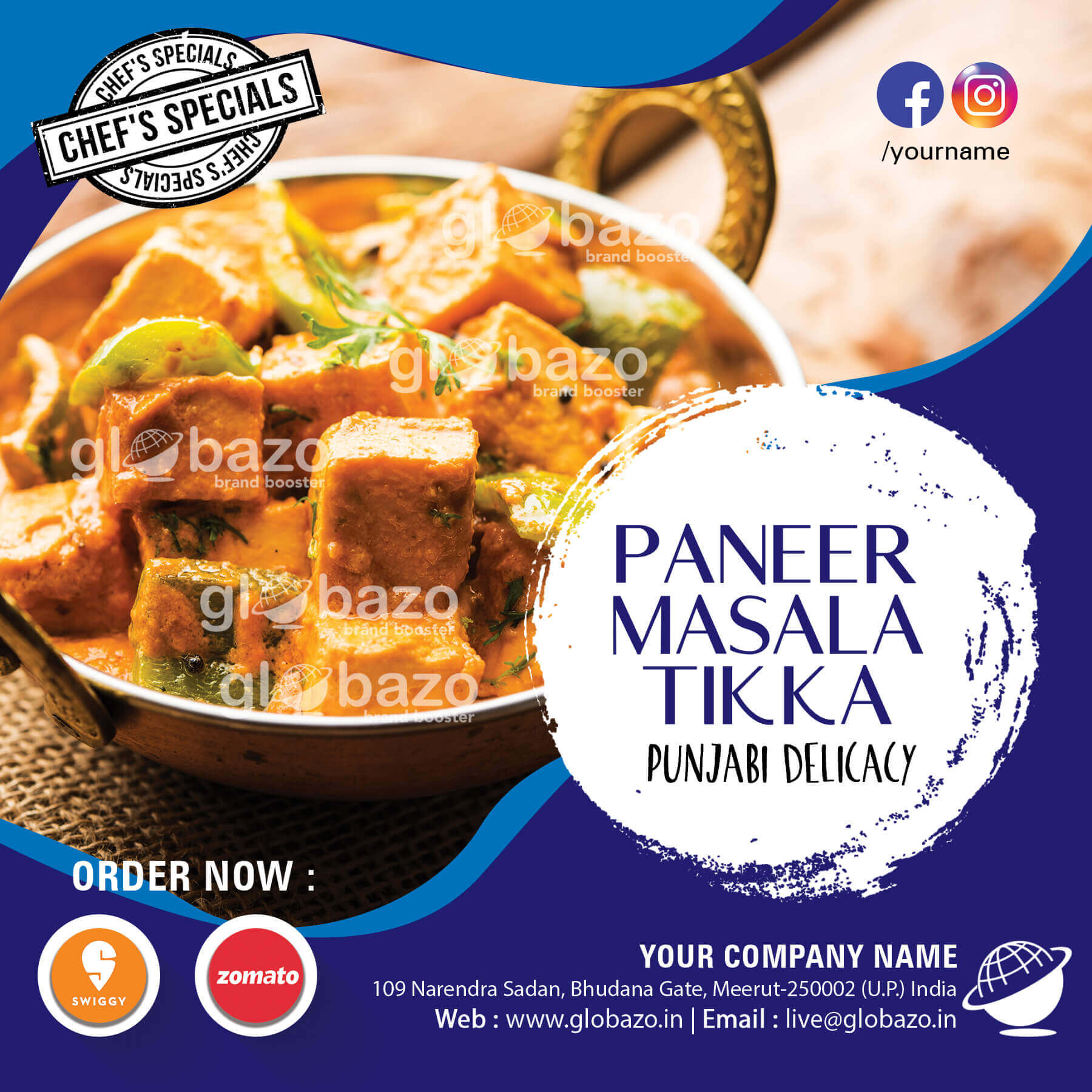 Main Course Specialty Master Dish according to your Shef/Restaurant/ Dhaba etc. under Your Brand Banner in a attractive way with Globazo.