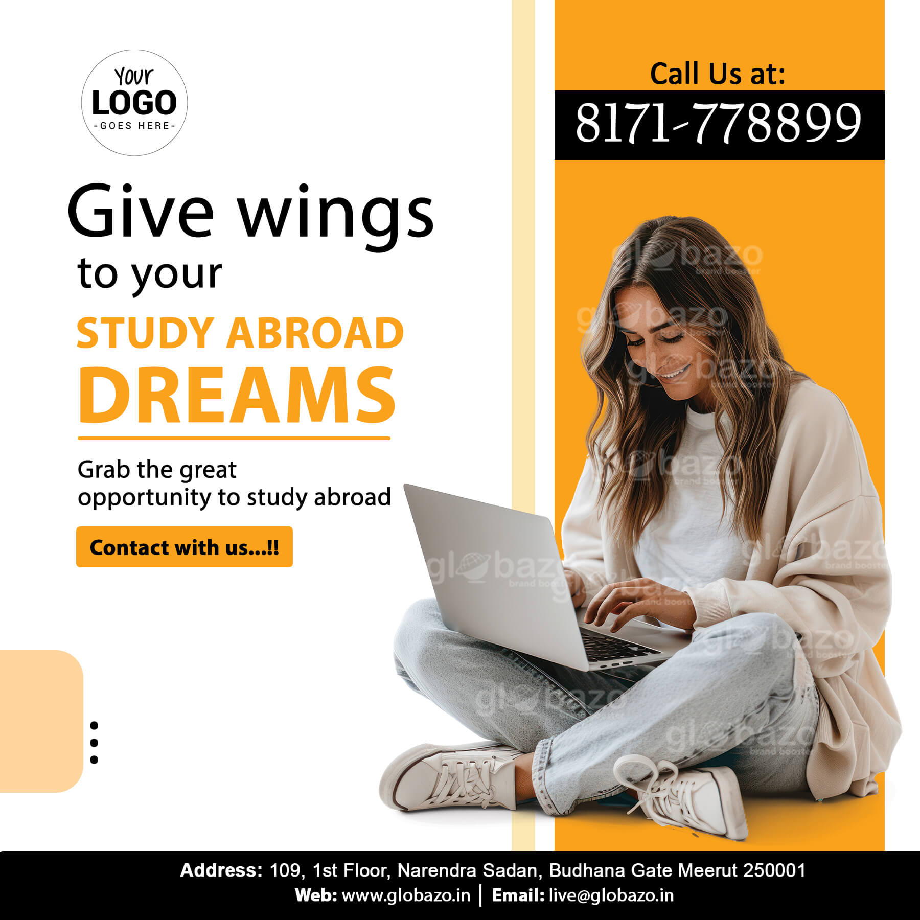 Simply by providing us your company details (brand logo, address, mobile numbers, punch line , target audience)