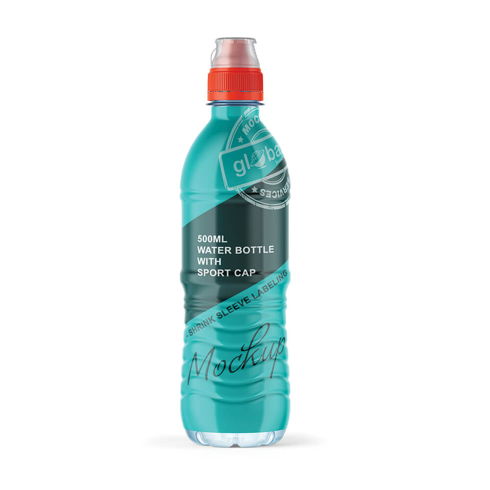 500ml Water Bottle with Sport Cap Mockup Shrink Sleeve Labeling (pkg-864)