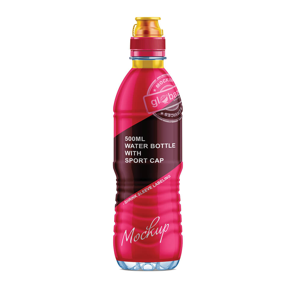500ml Water Bottle with Sport Cap Mockup Shrink Sleeve Labeling (pkg-865)