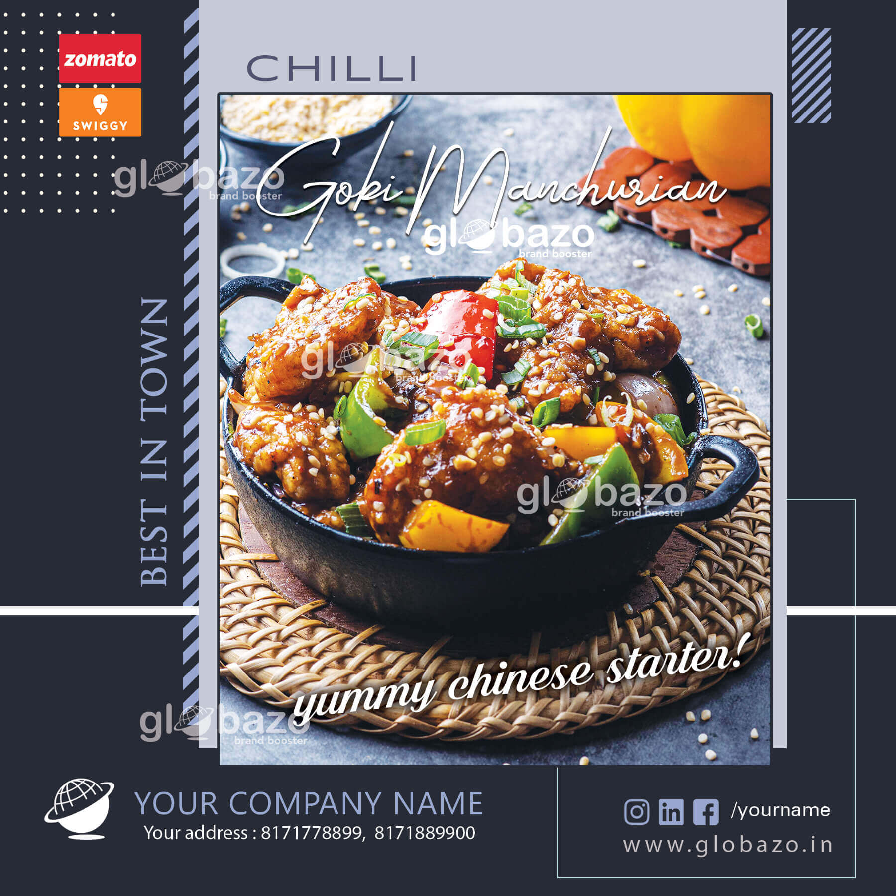 Snacks Dish according to your Shef/Restaurant/ Dhaba etc. under Your Brand Banner in a attractive way with Globazo.
