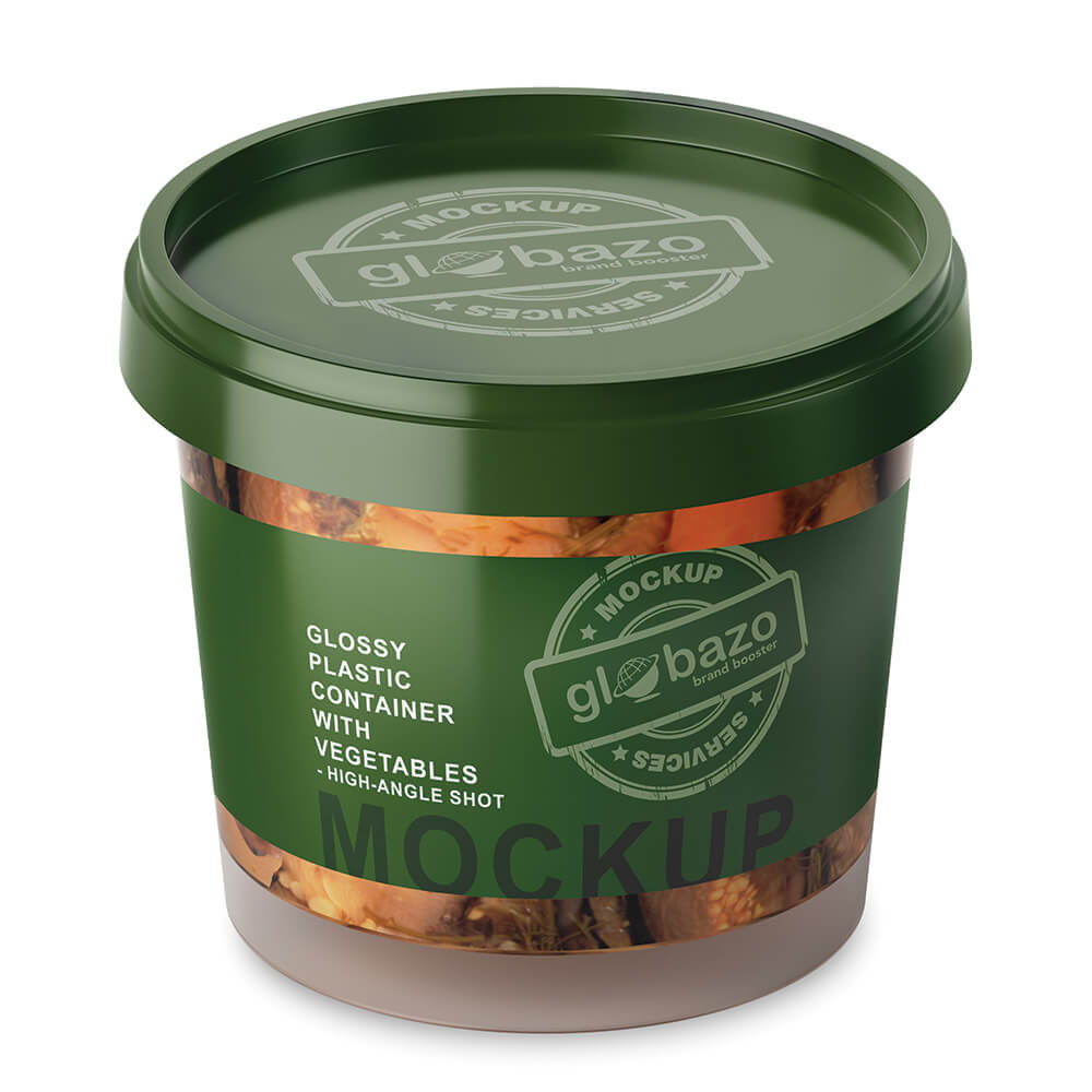 Glossy Plastic Container With Vegetables Mockup High Angle Shot (pkg-893)