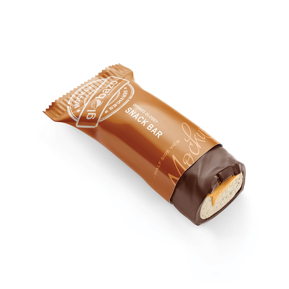 Opened Glossy Snack Bar Mockup Half Side View (pkg-602)