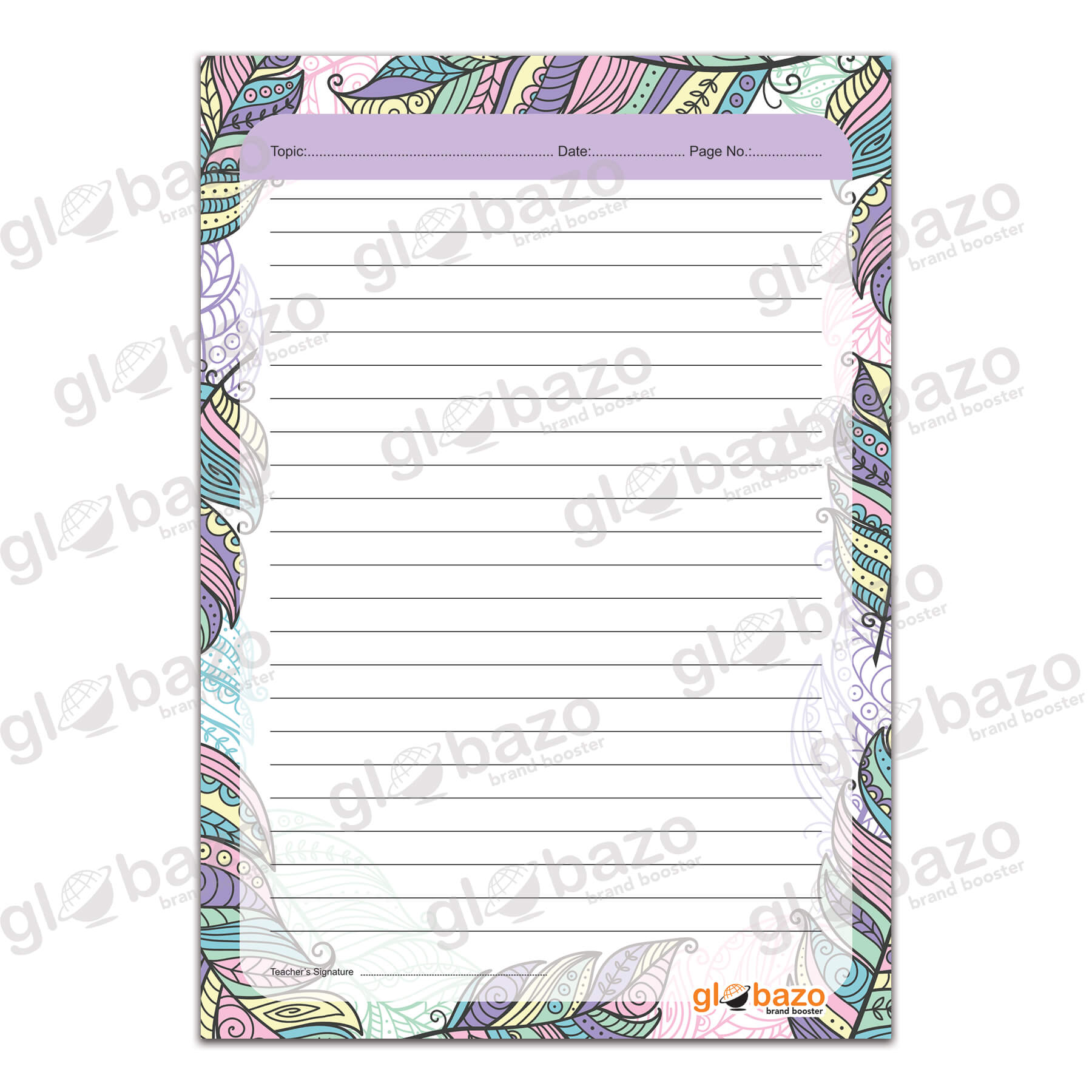 Ready to print CMYK color value A4 Designer Ruled Sheets using only paid images for stationary manufacturers worldwide only with an option of selling design only once so that the manufacturers , exporters and printers have their unique collections with them to print and sell to the entire world.