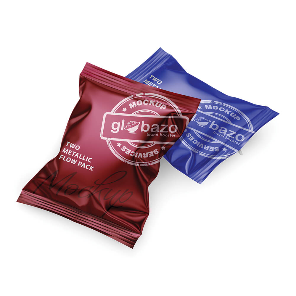 Two Metallic Flow Pack Mockup (pkg-604)